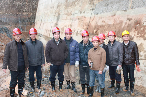 董事長(zhǎng)、總經(jīng)理王元旦一行首先來(lái)到基坑澆筑、混凝土攪拌站等施工現(xiàn)場(chǎng)進(jìn)行察看,與施工人員一一握手,并聽(tīng)取了春節(jié)期間帶領(lǐng)員工奮戰(zhàn)在施工一線(xiàn)的公司副總經(jīng)理聶玉和的生產(chǎn)情況匯報(bào)。董事長(zhǎng)、總經(jīng)理王元旦詳細(xì)詢(xún)問(wèn)了攪拌站的生產(chǎn)能力能否滿(mǎn)足施工要求,工程的進(jìn)展情況及后期施工中的各項(xiàng)措施,對(duì)項(xiàng)目部全體員工放棄節(jié)假日搶工期、保質(zhì)量、抓進(jìn)度的奉獻(xiàn)精神給充分肯定和高度評(píng)價(jià),他勉勵(lì)大家保證質(zhì)量安全的前提下,抓緊時(shí)間完成大壩防滲面板的施工、再苦再累也要咬緊牙關(guān)挺過(guò)去,并要求施工項(xiàng)目部合理安排好大家春節(jié)期間的工作和生活。