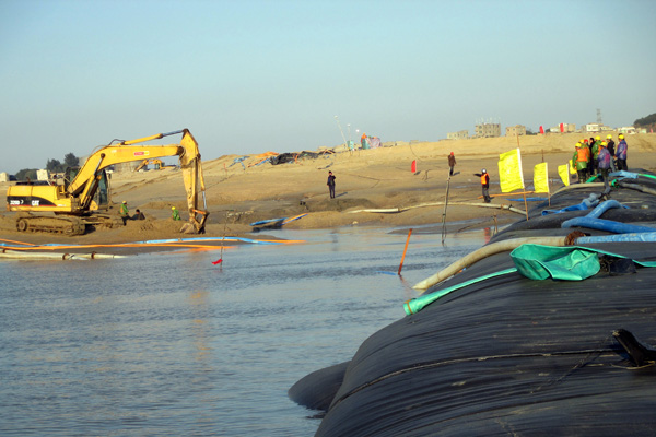 上游圍堰施工現(xiàn)場(chǎng)