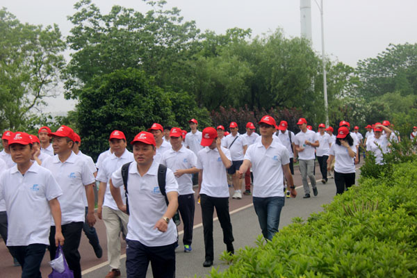 活動開始前,公司工會主席史偉作了簡短的動員講話,上午8:30健步走活動正式啟動。在工作人員的引導下,員工們邁著矯健的步伐大踏步的行走在美麗的艾溪湖湖畔。活動中,大家精神抖擻、意氣風發,你追我趕、揮汗如雨,最后全部順利抵達終點,全程共計11公里。