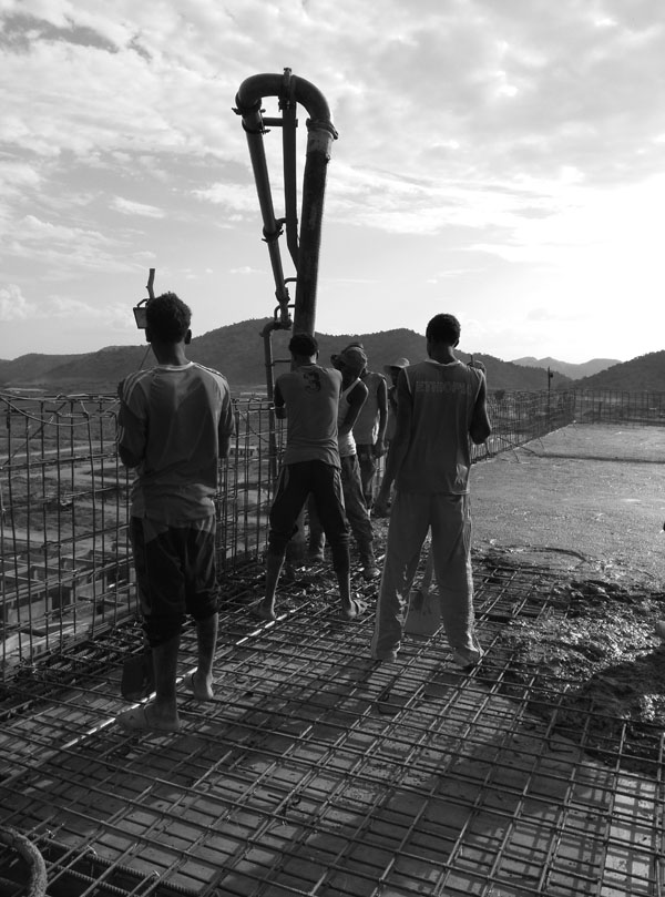 該項目位于接近赤道的埃塞俄比亞南部,素以氣候炎熱而著稱,施工條件頗為艱苦。施工過程中,項目部成員每天早出晚歸,常常一站就是一天,二十四小時連班也是家常便飯。在主廠房接近封頂的關鍵時刻,項目部全體員工有的夜里跟隨混凝土罐車執(zhí)行押車任務,有的深夜依然堅持在澆搗一線指揮作業(yè),連續(xù)奮戰(zhàn)數日,終于完成封頂大任。