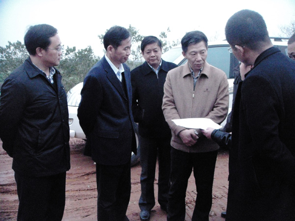 12月3日羅小云廳長一行沿堤查看工程施工情況,并認真聽取了當地政府、水務局領導對工程進展、房屋拆遷情況的匯報, 他充分肯定了各方的工作,對未拆遷的房屋要求當地政府抓緊做好村民工作,在一個星期內把剩余影響施工進展的二十多幢房屋拆除完畢,盡快提供作業面給施工單位。一個星期后12月10日羅廳長再次來到工地,檢查房屋拆遷情況,肯定當地政府在這一個星期作了大量工作,使得圩堤大部分房屋得以順利拆除,希望當地政府繼續努力,把剩余最后兩棟房屋拆遷完畢,同時要求施工單位應抓住有利天氣把延誤的工期趕上去,爭取盡快完工驗收。