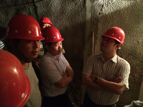 領(lǐng)導(dǎo)對(duì)隧洞進(jìn)行安全、質(zhì)量檢查