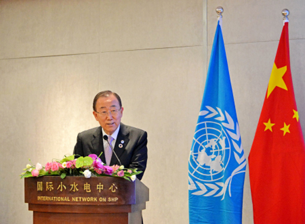 7月9日上午,聯合國秘書長潘基文出席了由聯合國開發計劃署、聯合國工發組織、國際小水電中心共同舉辦的“應對氣候變化南南合作主題會”,并發表重要講話,會議在國際小水電中心舉行。聯合國副秘書長吳紅波、中國駐聯合國代表劉結一大使等陪同出席。