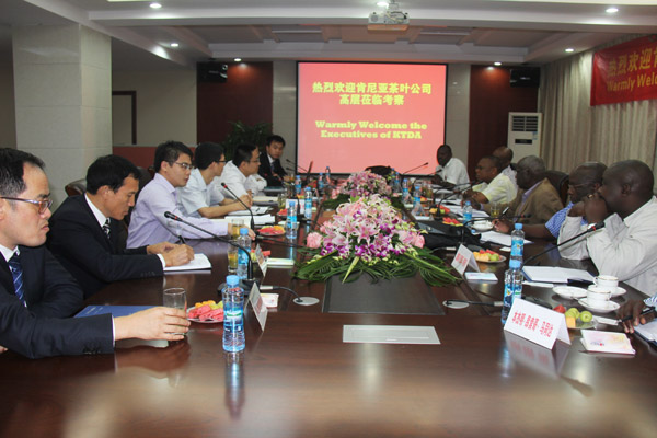 2014年9月上旬,肯尼亞茶葉發展有限公司董事Philip Kibirech NG’Etich先生一行七人應邀來我公司參觀考察,旨在加深雙方了解和建立互惠共贏的合作。總經理徐洪良代表公司對他們的到來表示熱烈歡迎,總會計師王義生、總工程師胡鴻煌及海外公司相關負責人參加了會見并陪同肯尼亞客人參觀了公司總部各部門。