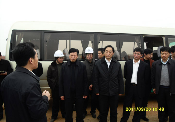 3月26日,水利部劉寧副部長到撫州唱凱堤檢查指導除險加固工程。省政府副秘書長謝茂林,水利廳副廳長、省鄱建辦主任朱來友,水利廳副廳長曾曉旦,省水文局局長鐘濤,撫州市委市政府有關領導及我公司董事長總經理王元旦等陪同。