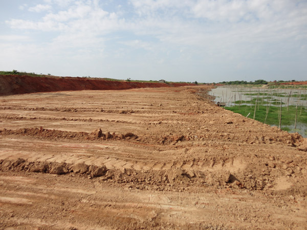 水平防滲2標(biāo)位于進(jìn)賢縣信西聯(lián)圩,是對滲漏等險(xiǎn)情嚴(yán)重堤段進(jìn)行水平防滲處理。施工項(xiàng)目為填塘壓浸,處理堤線長8408米。該工程于2011年1月1日開工,2011年4月30日全部完工。