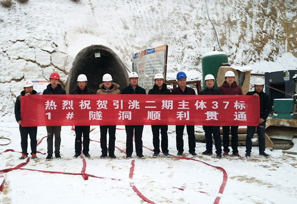 期間,徐洪良總經(jīng)理一行與業(yè)主、設(shè)計(jì)、試驗(yàn)檢測、監(jiān)理等單位的領(lǐng)導(dǎo)頂著鵝毛大雪,參加了37標(biāo)1#隧洞貫通儀式。