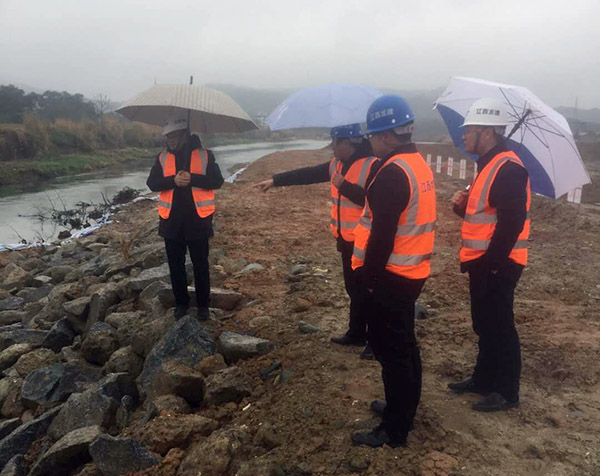 徐洪良總經理一行在仔細查看了施工現場后,認真聽取了項目部主要管理人員對前階段的生產管理情況和后續工作安排的詳細匯報。在與項目部管理人員的座談會議上,徐洪良總經理對前一階段項目部全體成員克服諸多困難取得的工作成績給予了充分肯定。同時,指出了在施工管理過程中需加以改善的不足之處,并為后續的工作開展提出了明確的工作目標和要求:一是項目部全體人員要加緊從春節長假的狀態中調整過來,快速進入到良好的工作狀態;二是項目部要科學謀劃、緊盯目標,在制定科學的度汛預案前提下加快施工進度,防范桃花汛對工程施工造成的風險和影響,并要求切實做好安全度汛的各項工作;三是繼續狠抓安全生產工作不放松,始終保持安全生產管理的高壓態勢,切實加強現場安全管理,確保施工安全;四是持續改進質量管理方法,不斷提高全員質量意識和管理水平,優質高效地推進項目建設,打造品牌工程。