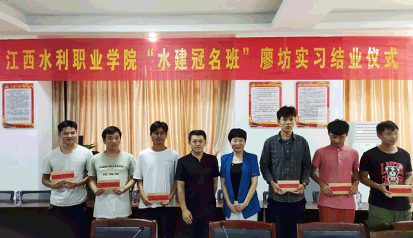 6月1日,由江西省水利職業學院,江西省水利水電建設有限公司冠名的“水建冠名班”在撫州廖坊灌區二期工程ppp項目進行了實習結業儀式。