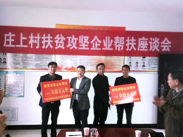 為認(rèn)真貫徹落實(shí)黨的十九大關(guān)于堅(jiān)決打贏脫貧攻堅(jiān)戰(zhàn)的新部署新要求,踐行企業(yè)的社會(huì)責(zé)任。11月17日,公司副總經(jīng)理王俊華同志率撫州廖坊灌區(qū)二期工程施工總部負(fù)責(zé)人胡福民、項(xiàng)目財(cái)務(wù)部負(fù)責(zé)人肖志兵代表江西省水利水電建設(shè)有限公司前往南城縣洪門(mén)鎮(zhèn)參加莊上村扶貧攻堅(jiān)企業(yè)幫扶座談會(huì),并將公司捐助的10萬(wàn)元扶貧資金送至莊上村村委會(huì)。
