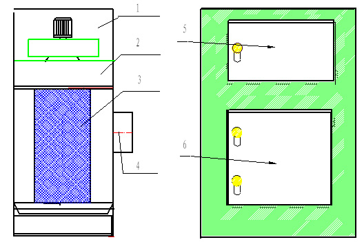 本設備采用聚脂纖維濾芯過濾的方法,每個濾芯的過濾面積10-15㎡,根據處理風量的需要可以增加濾芯的數量,濾芯的拆裝維修不需要工具,濾芯使用周期為1年--2年。