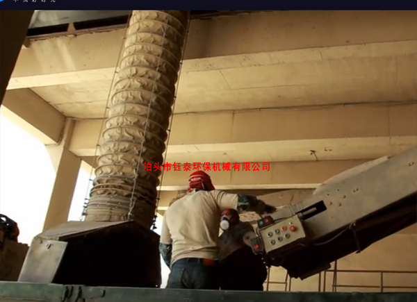 水泥廠多采用自動裝車機進行袋裝水泥裝車,來提高袋裝水泥裝車速度和工作效率,但由于皮帶機出包溜板與汽車車廂存在約1.5m左右的高差,裝車時必然造成碼包周邊揚塵,且粉塵特點范圍大、濃度低。 針對上述揚塵問題,我公司研制袋裝水泥裝車機除塵器,利用與裝車皮帶機協(xié)同作業(yè)的吸塵罩捕集揚塵,再經(jīng)氣箱脈沖布袋除塵器進行過濾,從而降低大氣粉塵含量,達到我國粉塵排放標準,改善裝車工作環(huán)境。